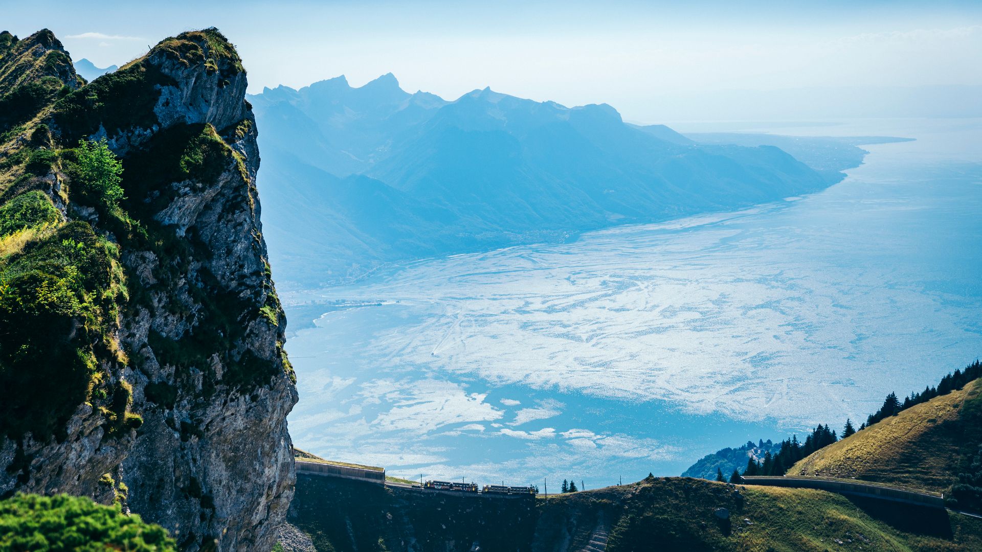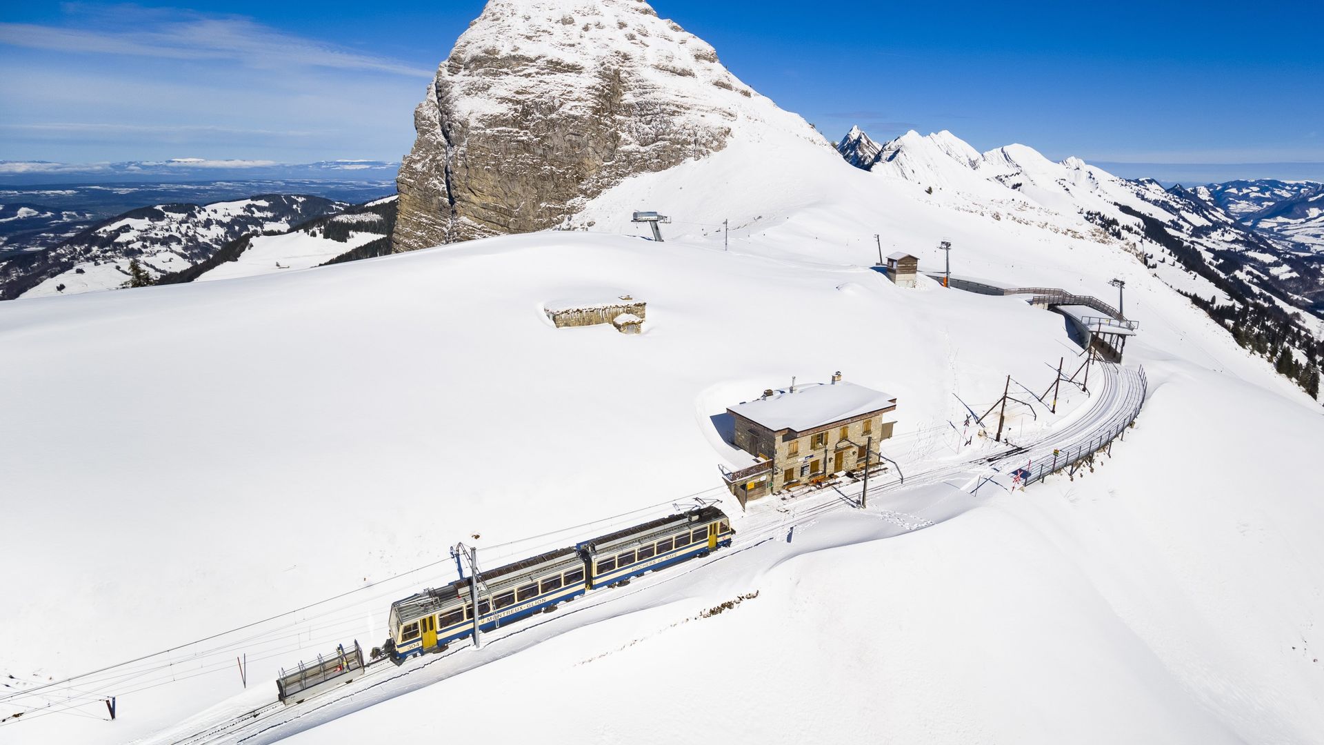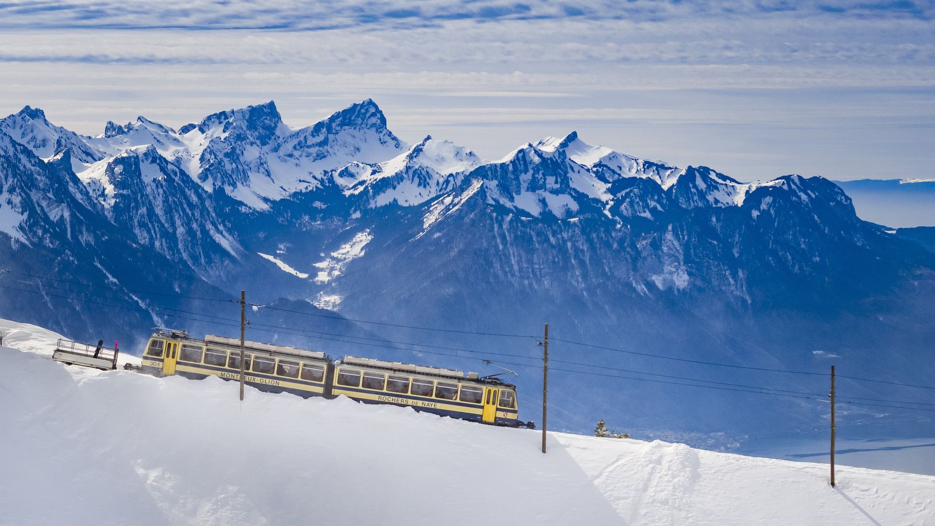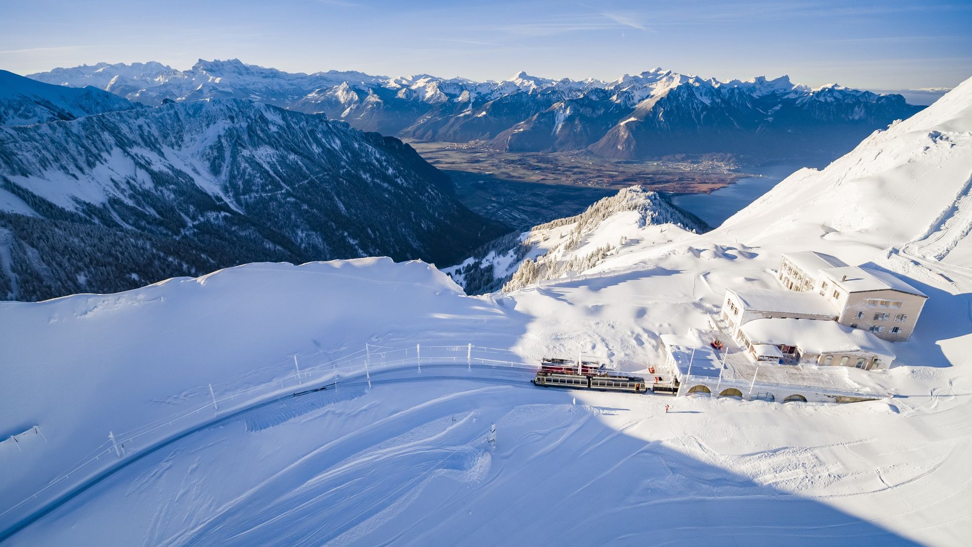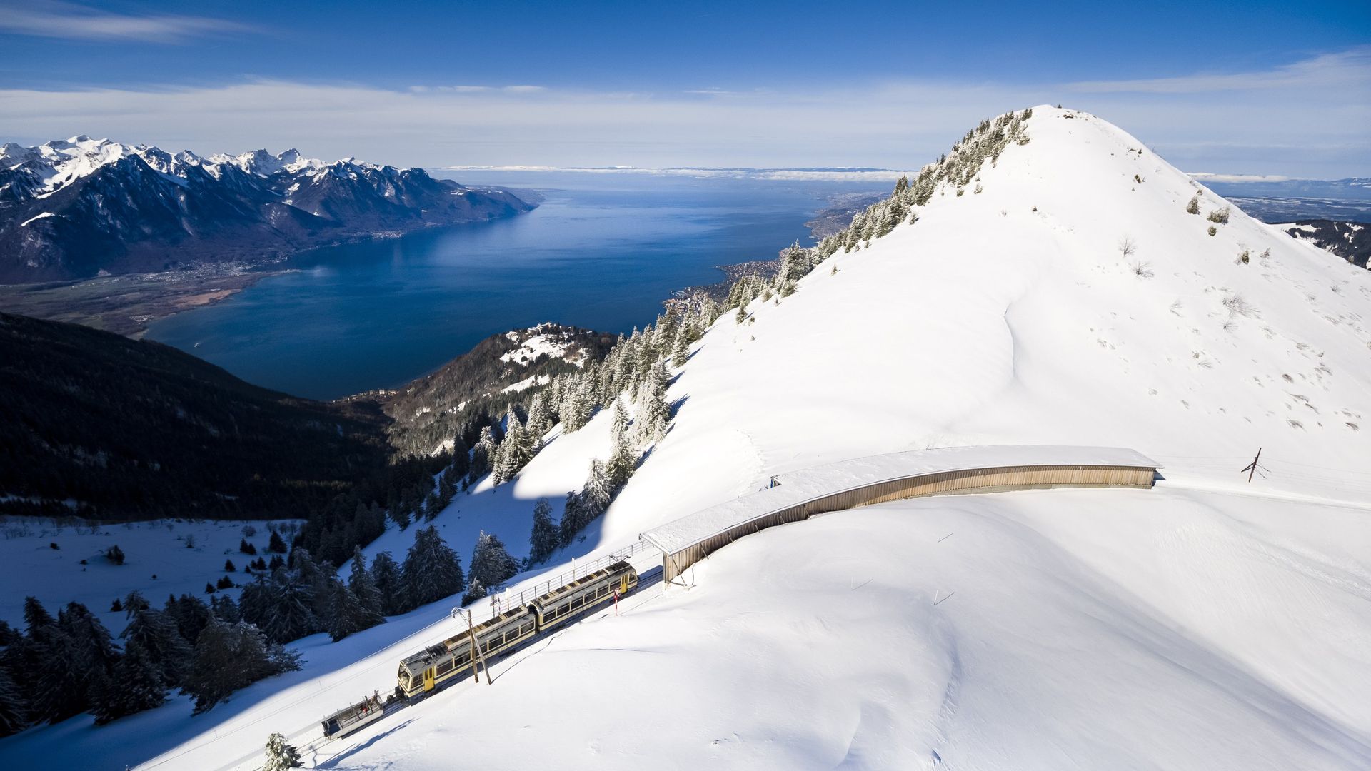Halten Sie den Atem an, nehmen Sie in der Zahnradbahn platz und es geht los. Der Zug steigt und steigt und steigt immer höher. Nichts schreckt ihn ab, weder die steilen Hänge noch der Schnee. Ankunft auf dem Rochers-de-Naye, (2042 Meter) , was für ein Spektakel ! Der Genfersee in seiner ganzen Pracht. Kleiner Tipp: man sagt, dass hier der echte Weihnachtsmann die Adventszeit verbringt.
