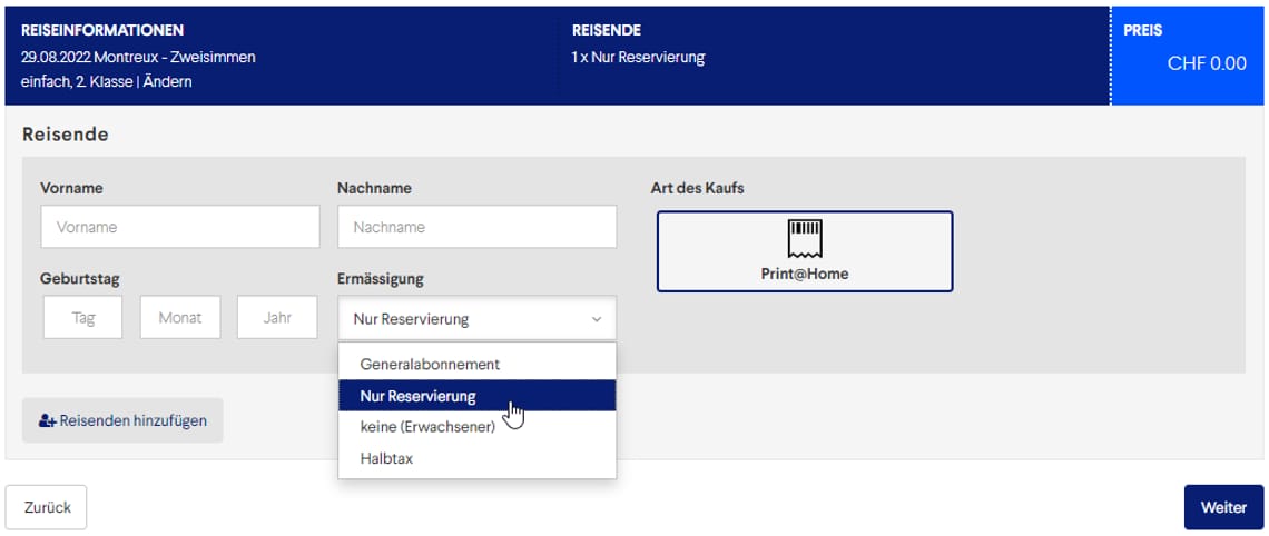Currently only the GoldenPass Panoramic and GoldenPass Belle-Epoque trains between Montreux and Zweisimmen as well as the GoldenPass Express trains between Montreux and Interlaken Ost (from the end of 2022) can be booked online.